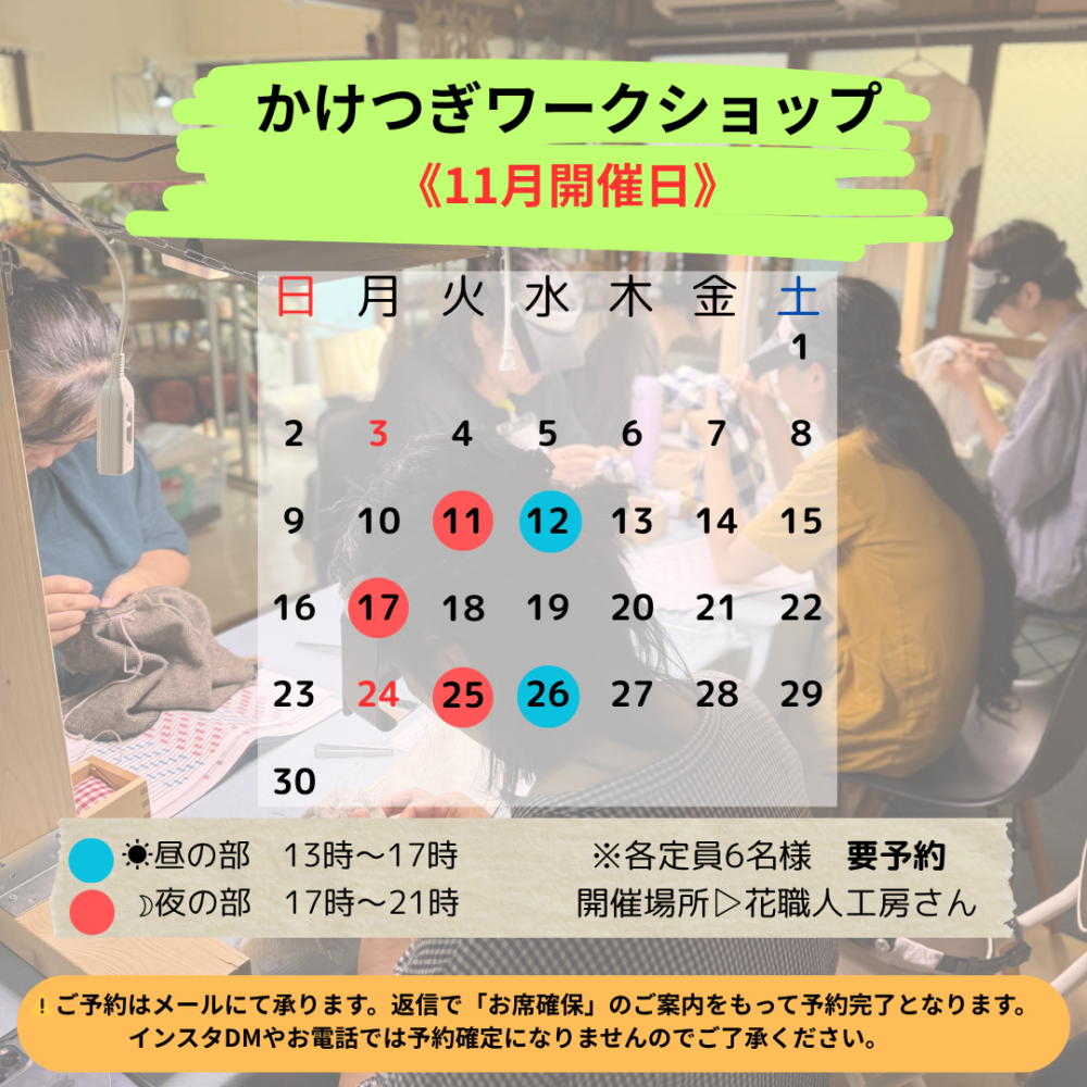 【かけつぎワークショップ11月開催日】のお知らせです📢