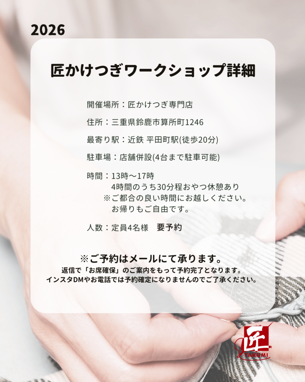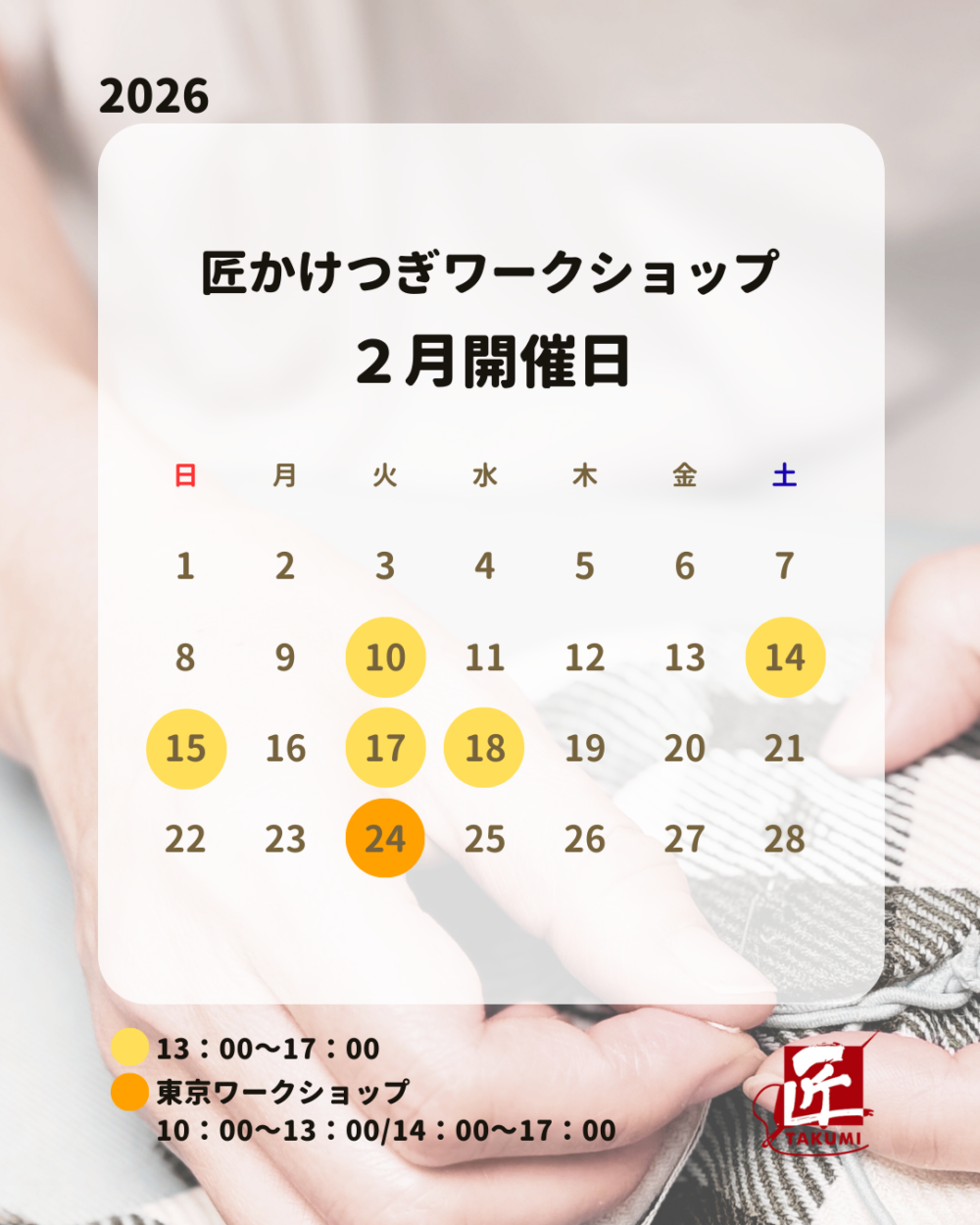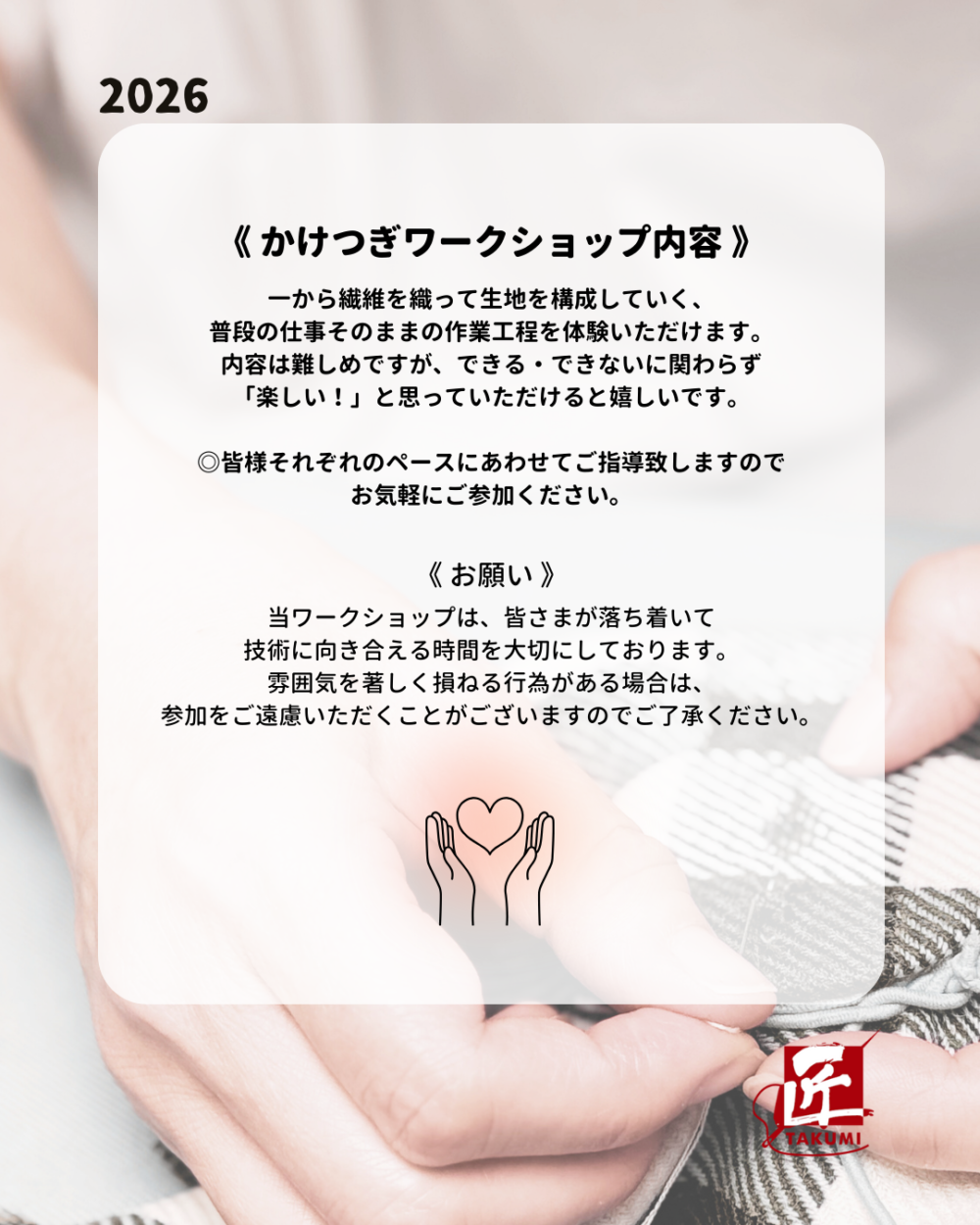 さて、匠かけつぎワークショップ【2月開催日】のお知らせです📢