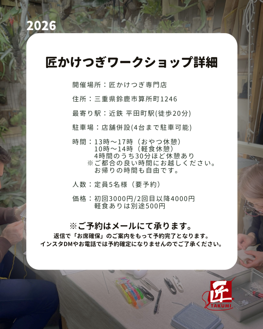 出張ワークショップに続き鈴鹿開催日のご案内です💁♀️