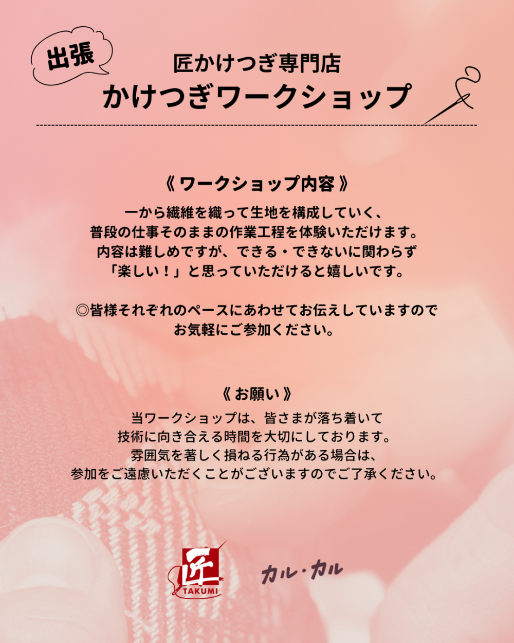 ご要望の多かった関東エリアで初めての出張ワークショップです!