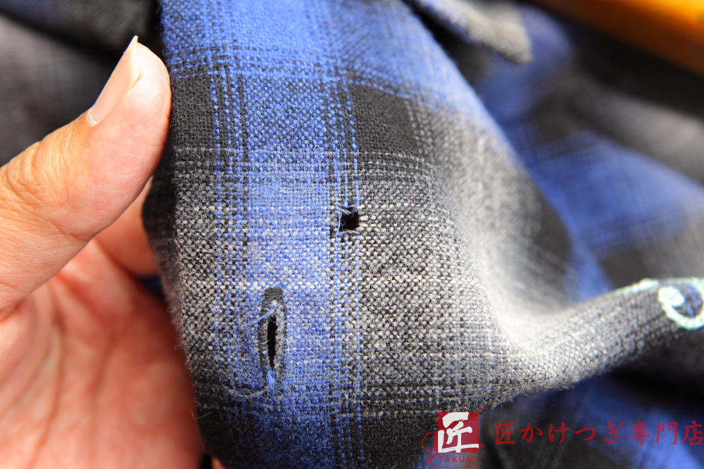 その他 4~8mm以下 2026.02.06 ウールシャツの虫食い穴の修理 BEFORE AFTER 修理内容ウールシャツ 虫食い穴 かけつぎ(かけはぎ)修理 穴の大きさ 4~8mm以下 修理料金6,930円 修理日数60日 ※当店の状況によります スタッフよりコメント ウール製品は虫食いの被害に遭いやすい素材です。 チェック柄でも同じように柄を復元します。 (プリント染めものは柄を合わせることは難しいです) (神奈川県U様 ありがとうございました)