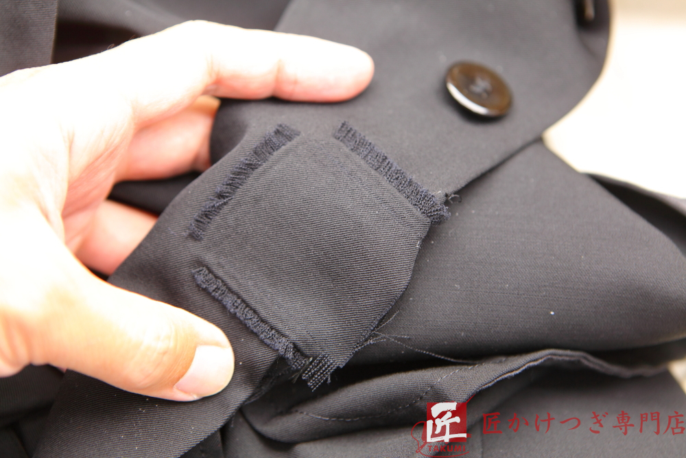 スーツ上着 30mm以上 2026.04.03 ジャケット ボタン付け根の破れ修理 BEFORE AFTER 修理内容ジャケット ボタン付け根の破れ かけつぎ(かけはぎ)修理 穴の大きさ 30mm以上 修理料金18,700円 修理日数60日 ※当店の状況によります スタッフよりコメント ボタン付け根の破損はよくご依頼を頂きます。 大きな破れの場合は、ある程度修理の痕跡が残ります。 予めご了承くださいませ。 (京都府I様 ありがとうございました。)