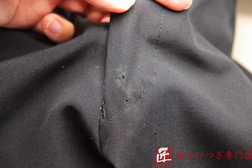 スーツズボン 虫食い穴 かけつぎ(かけはぎ)修理