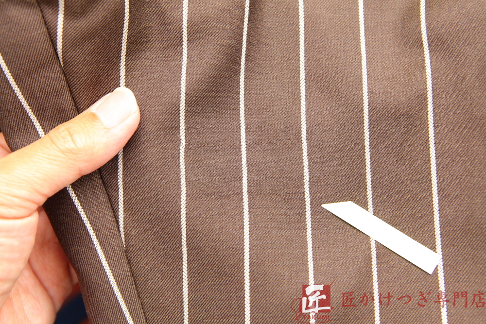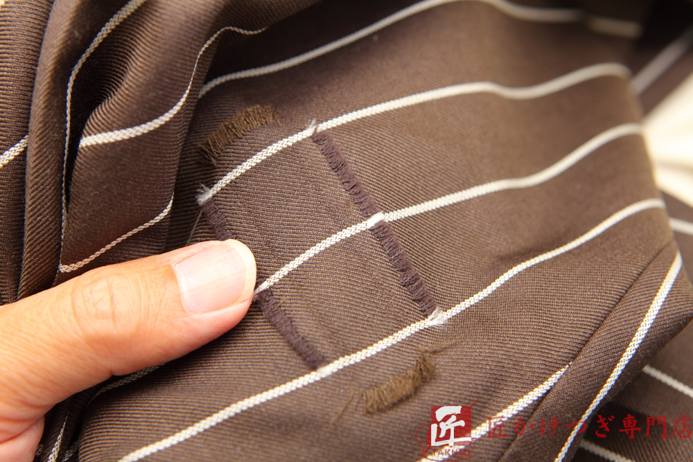 スーツズボン 30mm以上 2026.01.23 スーツズボンの破れ BEFORE AFTER 修理内容スーツズボンの破れ かけつぎ(かけはぎ)修理 穴の大きさ 30mm以上 修理料金22,000円 修理日数60日 ※当店の状況によります スタッフよりコメント ストライプの柄がある生地でもかけつぎ修理は可能です。 今回は生地を移植する方法をとりました。 (滋賀県H様 ありがとうございました。)