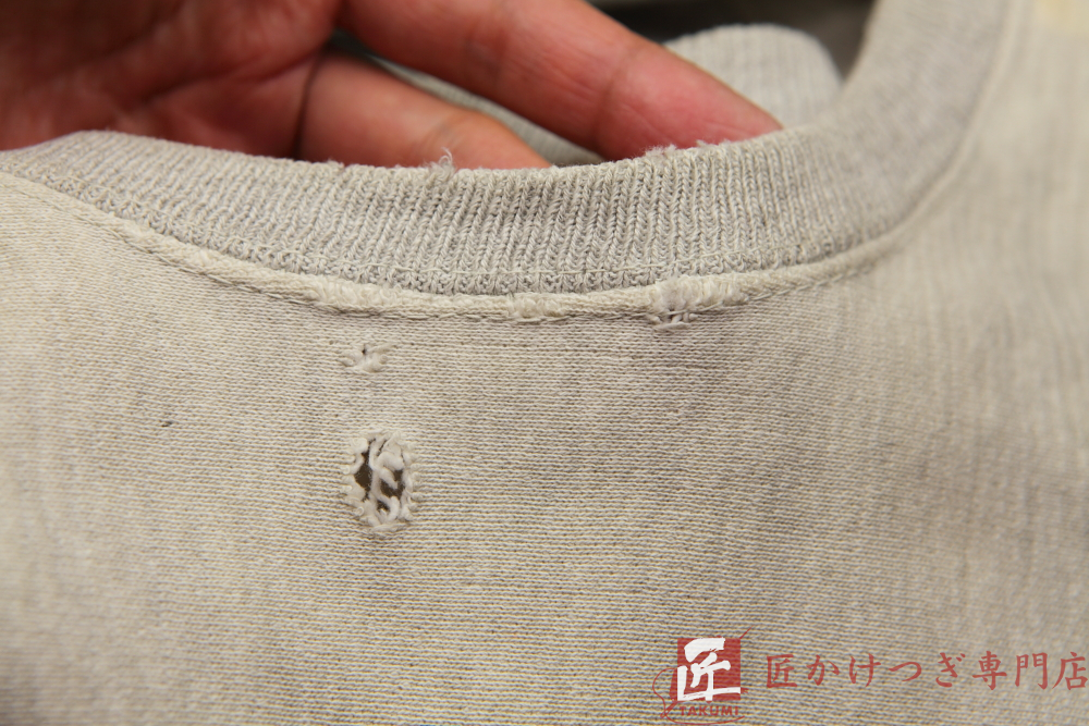 パーカー・スウェット 30mm以上 2025.12.27 ヴィンテージスウェットの穴 BEFORE AFTER 修理内容ヴィンテージスウェットの穴 かけつぎ(かけはぎ)修理 穴の大きさ 30mm以上 修理料金19,800円 修理日数60日 ※当店の状況によります スタッフよりコメント ヴィンテージスウェットの穴です(3箇所) 移植する繊維は、 当店ストックのヴィンテージスウェットのものを使用します。 色によっては本体の支障がないところから取らせて頂く場合がございます。 ヴィンテージものは作業困難な為、 お時間を頂きますのでご了承ください。 (千葉県O様 ありがとうございました。)