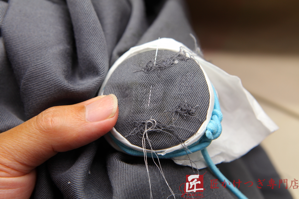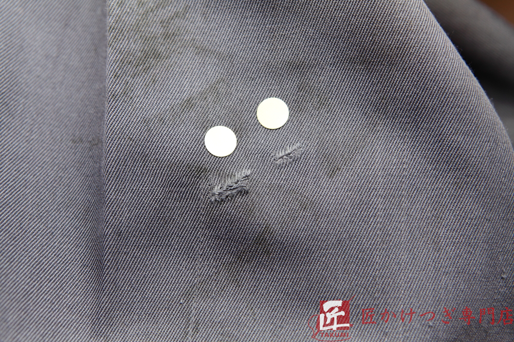 スーツズボン 16~30mm以下 2025.12.09 綿素材のズボン 切り傷 BEFORE AFTER 修理内容綿素材のズボン かけつぎ(かけはぎ)修理 穴の大きさ 16~30mm以下 修理料金19,800円 修理日数60日 ※当店の状況によります スタッフよりコメント 四角の生地を移植する方法ですと修理痕が四角目立つ恐れがありましたので、 今回は繊維を一本ずつ織っていく方法をとりました。 かけつぎ修理のやり方は色々ありますが、 一番きれいに仕上がる方法で修理を致します。 (愛知県E様 ありがとうございました)