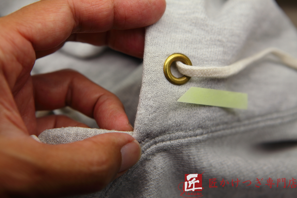 ヴィンテージパーカーの穴 かけつぎ(かけはぎ)修理